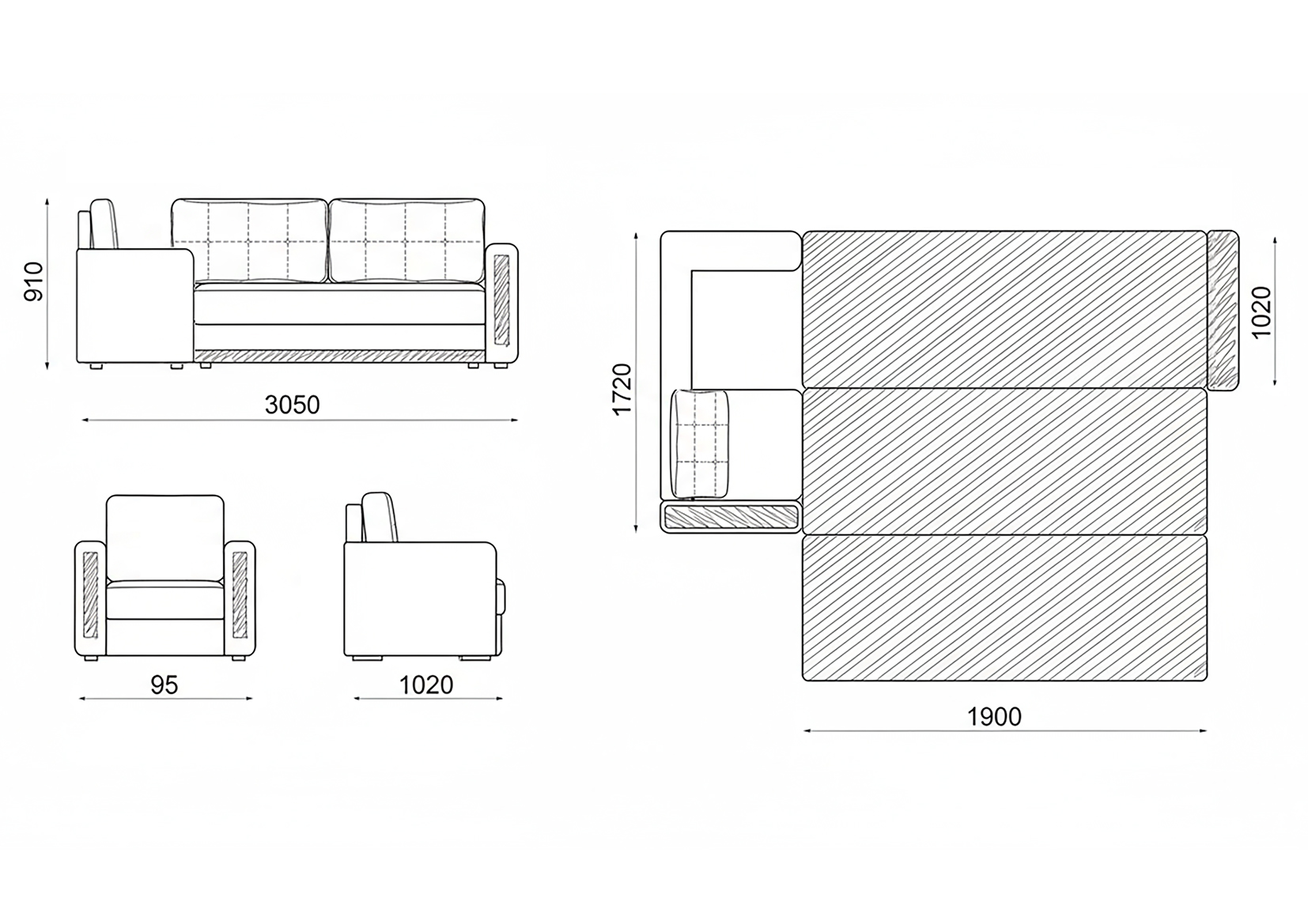 Наполнитель: подушки БППУ, чехлы съёмные